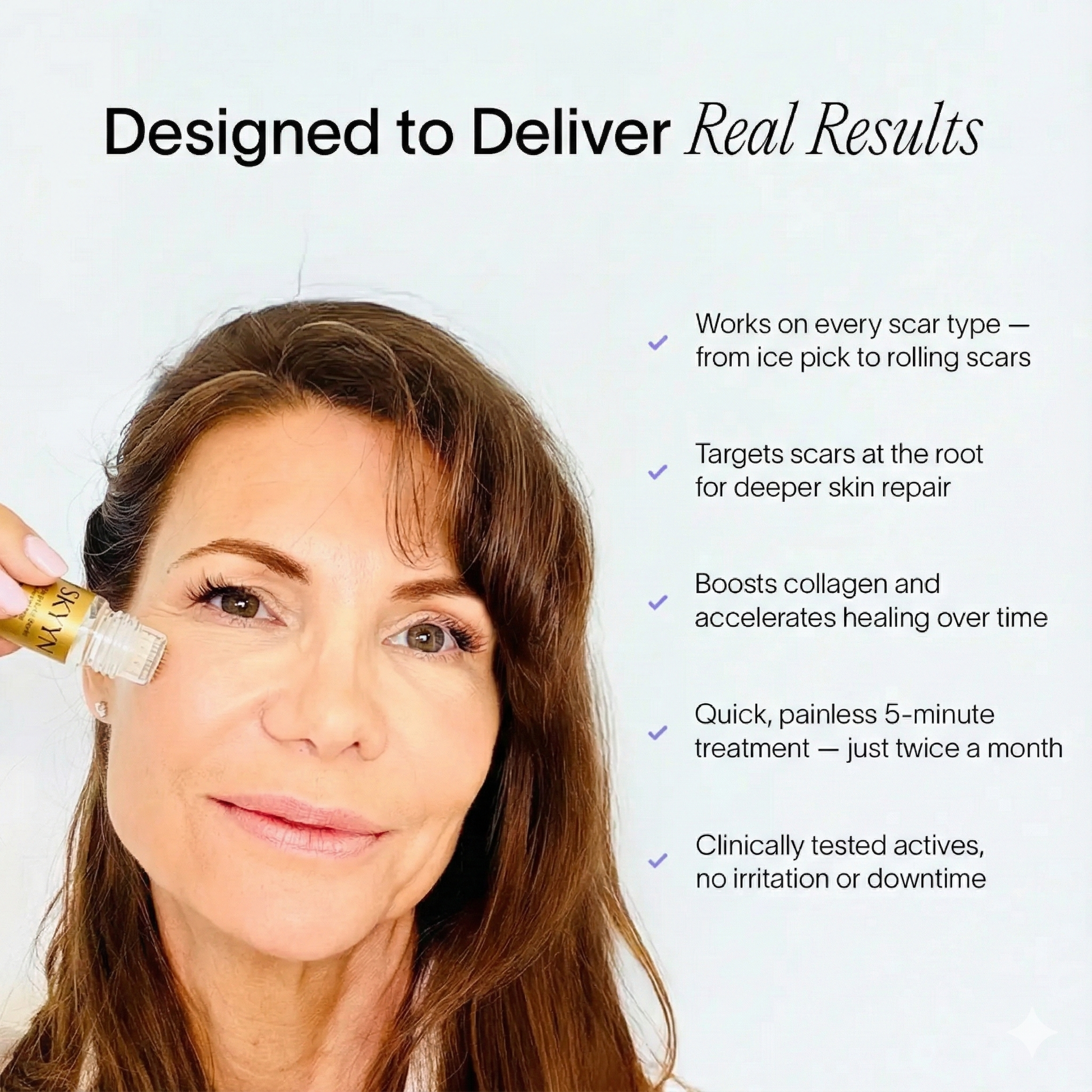It combines precision microneedling with a clinically formulated scar-repair serum.