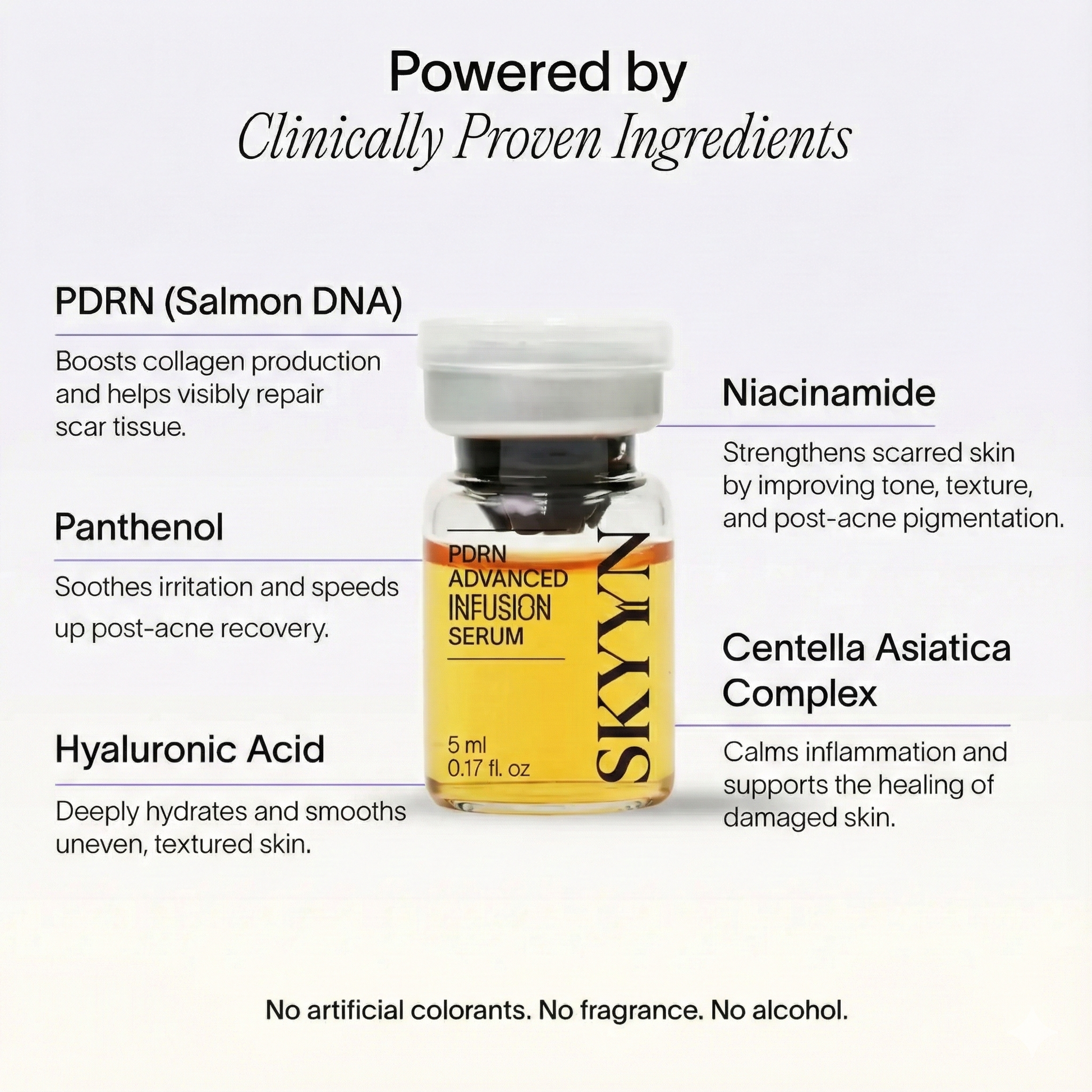 - PDRN: Stimulates skin regeneration and collagen synthesis